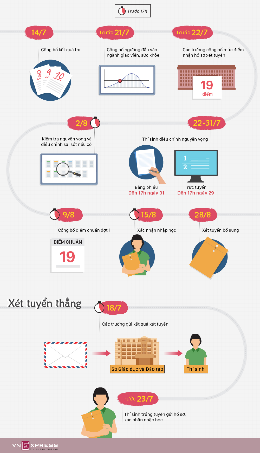 Các mốc tuyển sinh đại học thí sinh cần nhớ 05/072019 Sau khi có điểm thi vào ngày 14/7, các trường sẽ công bố mức nhận hồ sơ xét tuyển. Thí sinh có 10 ngày (22-31/7) để thay đổi nguyện vọng. Bài viết liên quan Jobchoice tiếp tục kết nối sinh viên thực tập tại các dự án trong bối cảnh bình thường mới Jobchoice ký kết hợp tác với Trường Đại học Greenwich Việt Nam Jobchoice triển khai chương trình đào tạo kỹ năng mềm tại Trường ĐH Quốc tế FPT Greenwich Jobchoice trao học bổng cho tân sinh viên Thủ khoa Khoa Kỹ thuật điện Trường Đại học Điện lực. Jobchoice và Trường CĐ Cơ điện Xây dựng Việt Xô tỉnh Ninh Bình ký kết hợp tác kết nối việc làm cho sinh viên