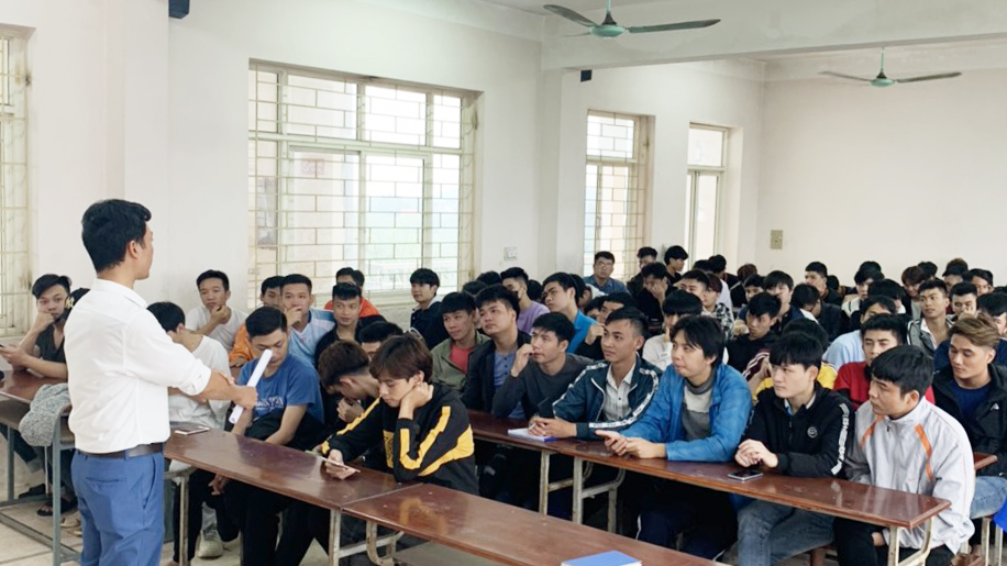 Quang cảnh buổi đào tạo của Jobchoice tại Nhà trường trước khi các em tiến hành Chương trình thực tập nghề