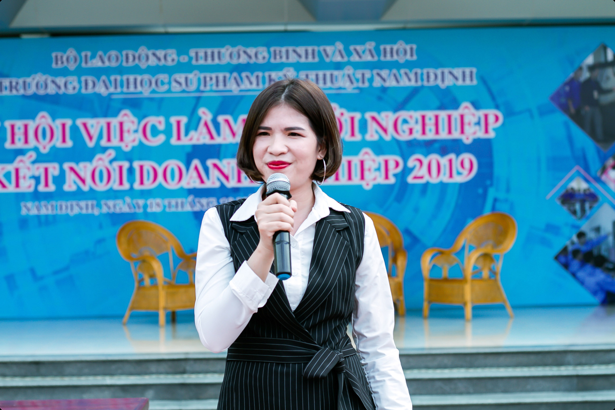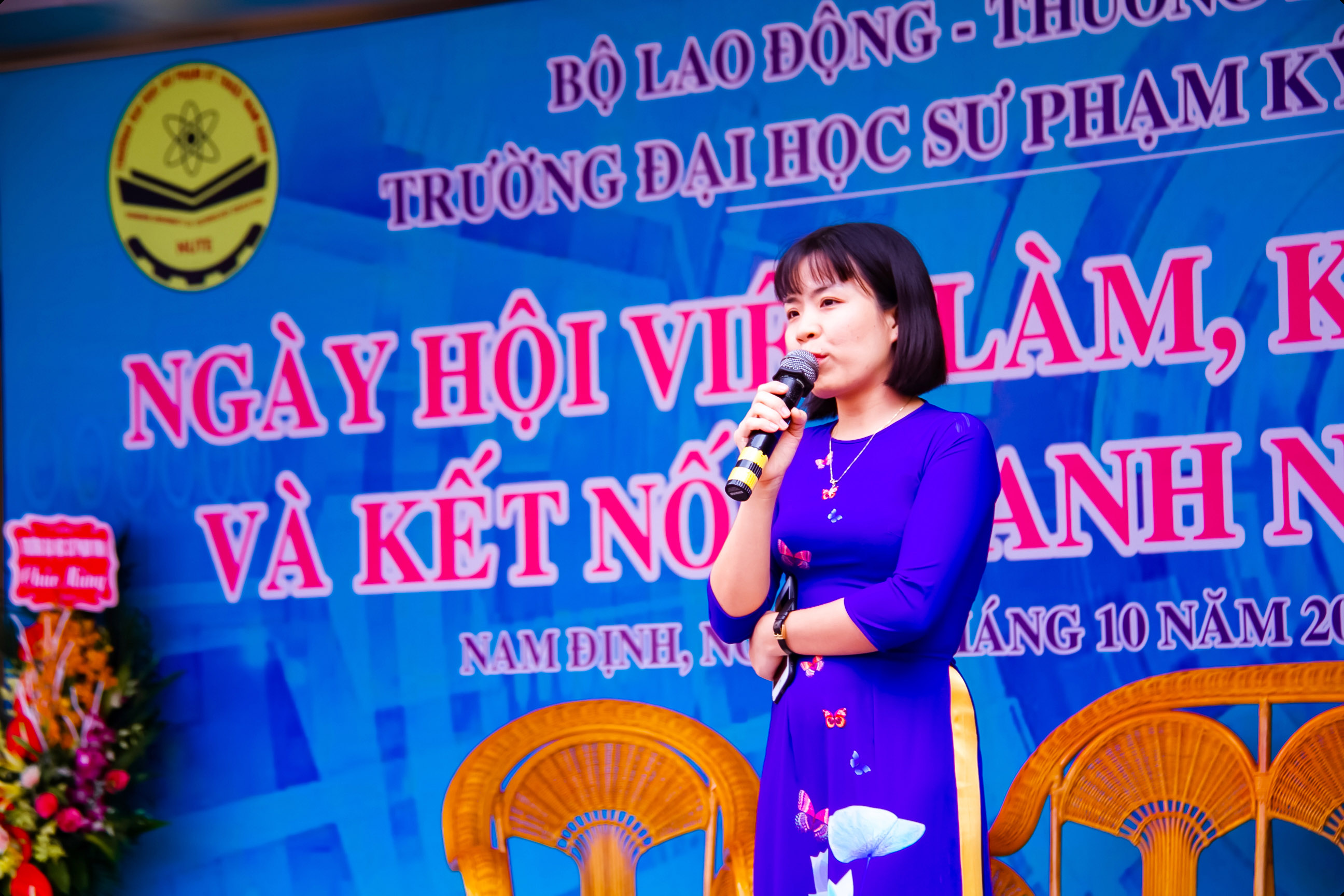 Sáng ngày 18/10/2019, tại Trường ĐH Sư phạm Kỹ thuật Nam Định, trong không khí vui tươi của Lễ khai giảng chào đón tân sinh viên và Ngày hội việc làm khởi nghiệp, chị Vũ Thị Xuân - TGĐ Công ty CP Phát triển Nghề nghiệp Tuổi trẻ Việt (Jobchoice) đã thay mặt các doanh nghiệp khách mời, đã chia sẻ với các bạn sinh viên của Nhà trường đề tài "Việc làm trong thời đại 4.0".